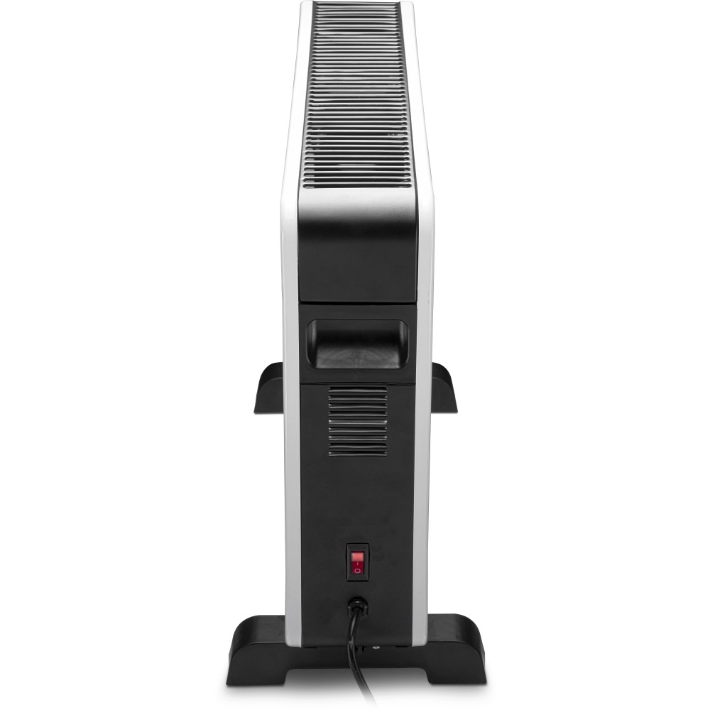 Kad je sobna temperatura niska, želite što prije toplinu. Zbog toga tanki konvektori imaju preklopni ventilator za ubrzanu cirkulaciju zraka i raspodjelu vrućeg zraka. Zagrijani zrak diže se kroz izlaz zraka, stvarajući prirodni usis koji u uređaj uvlači hladniji sobni zrak. Rezultat je ugodna toplina koja ispunjava sobu – koja je 100% čista, bez kondenzacije i bez mirisa zahvaljujući električnom grijaćem elementu.