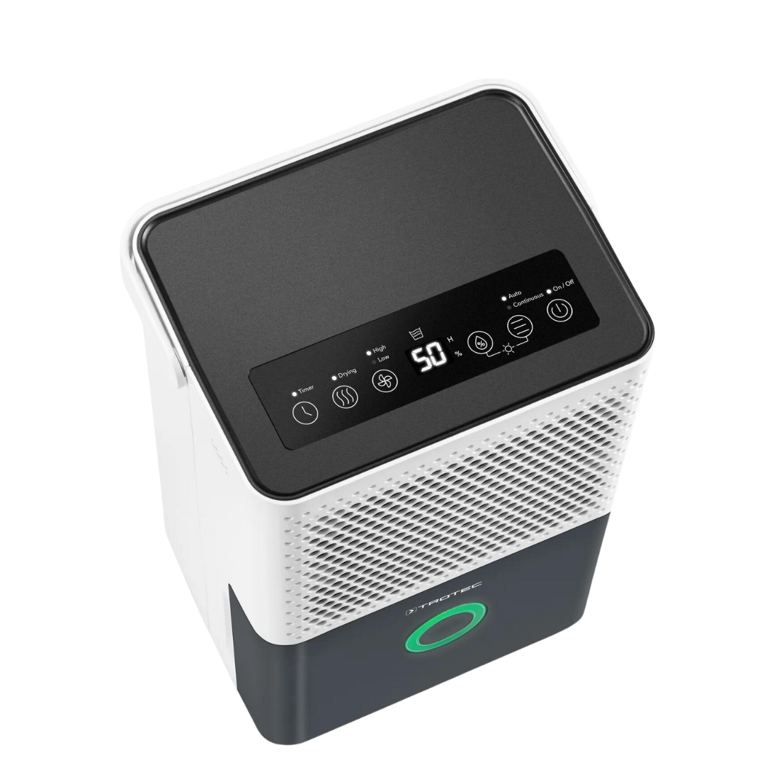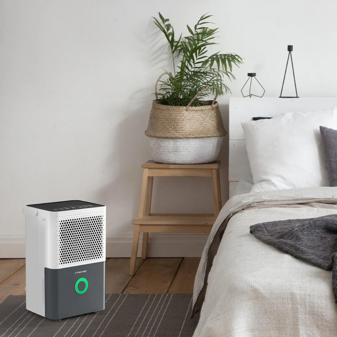 Moderni odvlaživač zraka TTK 33 E u atraktivnom dizajnu staje na kraj vlažnim sobama. Sustav automatskog odvlaživanja kojim upravlja higrostat smanjuje vlažnost zraka u sobi u dnevnim i poslovnim prostorima, uredima, trgovinama, zimskim vrtovima, podrumima i garažama na unaprijed zadanu vrijednost u rasponu od 30% do 80% relativne vlažnosti. S razinom zvuka od samo 43 dB (A), odvlaživanje zraka ugodno je tiho čak i pri najvišoj od dvije razine ventilatora, tako da se TTK 33 E također preporučuje za upotrebu I u spavaćoj sobi ili na radnom mjestu.