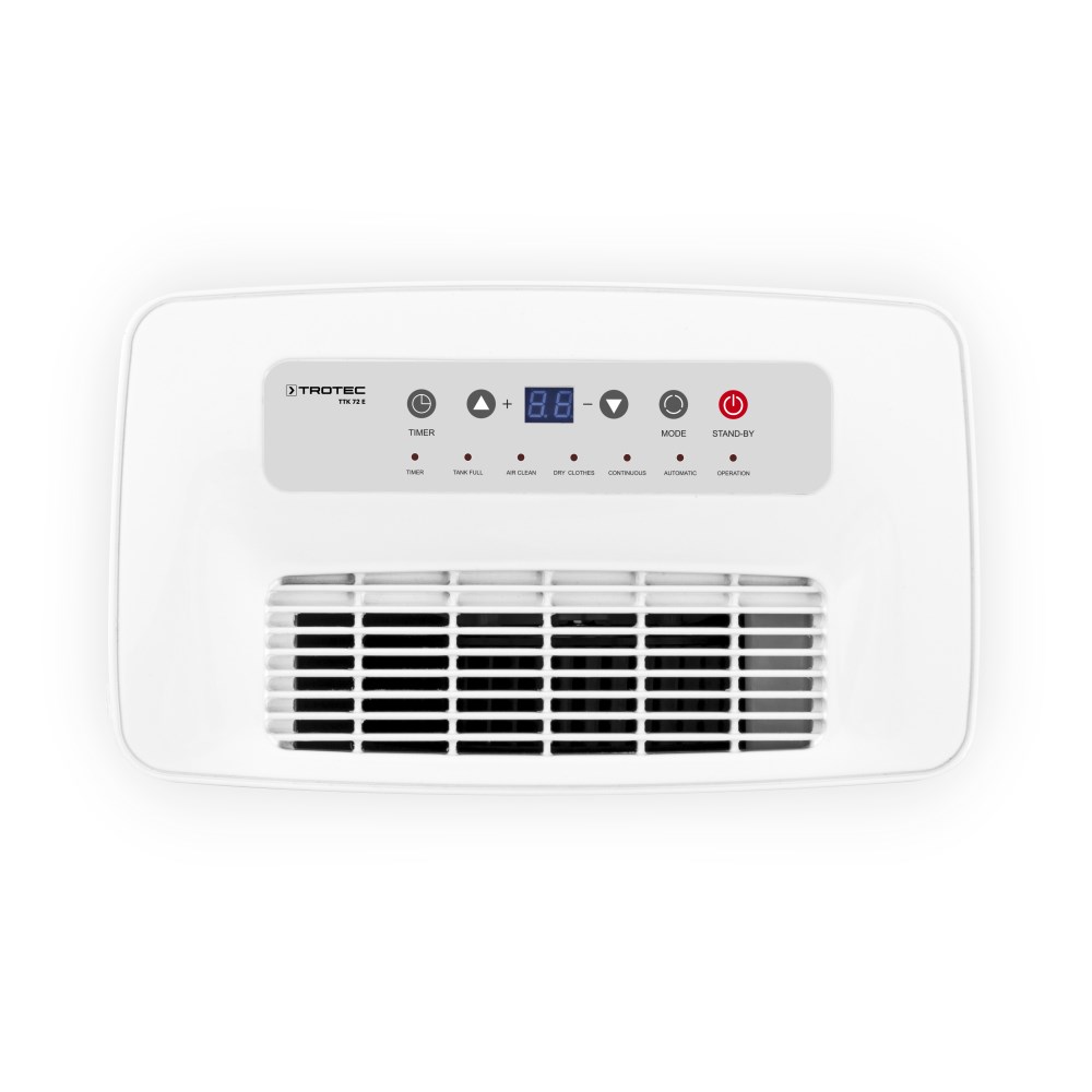 Sa učinkom odvlaživanja od maksimalno 24 litre dnevno, odvlaživač zraka TTK 72 E drži prostorije do 50 m² pouzdano suhim. Sljedeći načini odvlaživanja zraka dostupni su na jednostavnoj upravljačkoj ploči s digitalnim zaslonom: automatski pogon sa izabranom vlažnosti zraka od 55%, automatika odvlaživanja upravljana higrostatom sa ciljem između 30 i 80 % r.v. u koracima od 5%, stalni pogon te funkcija ventilacije.