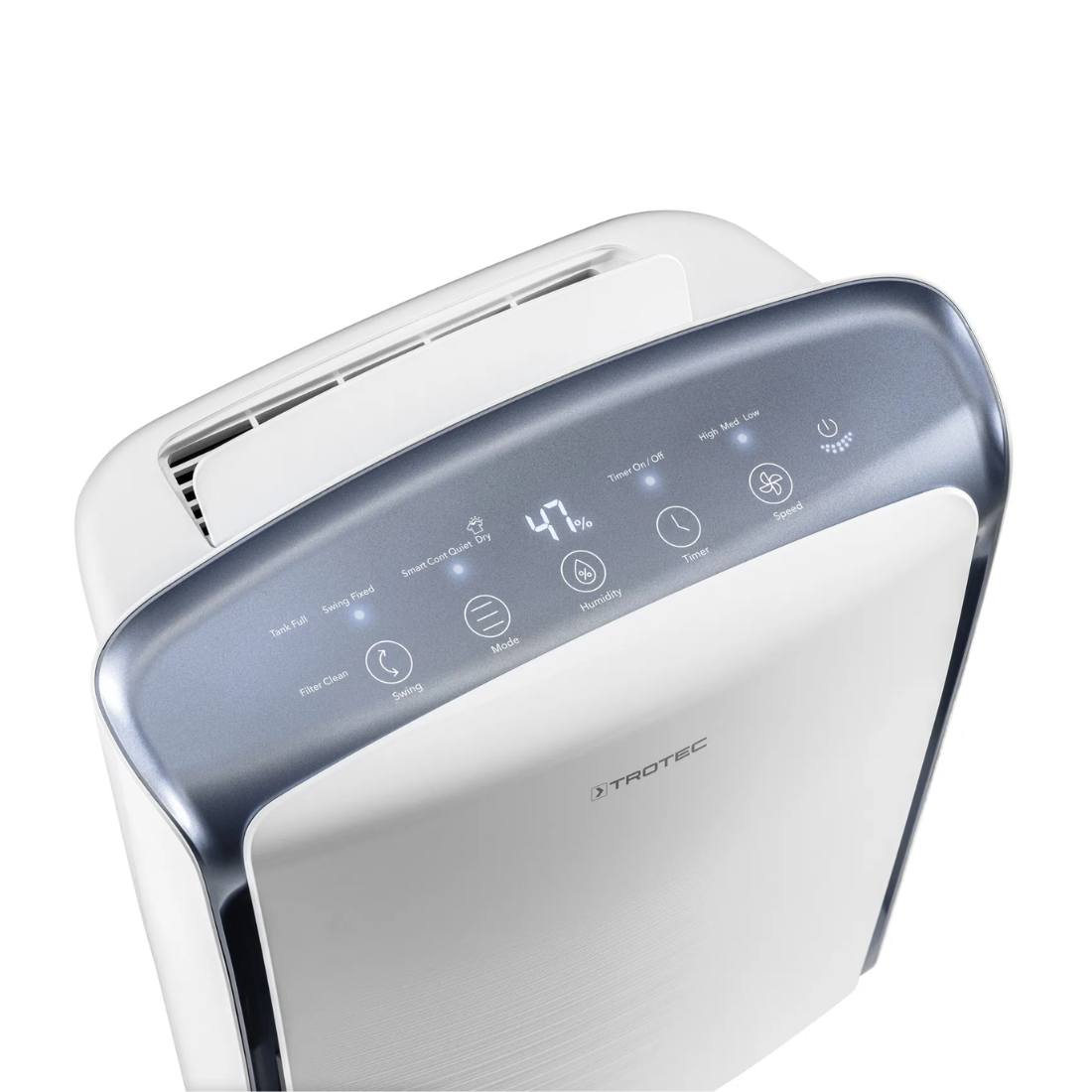 Tri razine ventilacije i funkcija ljuljanja koja se može uključiti u bilo kojem načinu rada poboljšavaju cirkulaciju zraka u prostoriji. Budući da TTK 73 E stvara tako malo buke – samo 43 dB(A) – čak i pri najvišoj razini ventilacije, njegove funkcije odvlaživanja i sušenja jedva da proizvode zvuk: optimalni uvjeti za neometano spavanje u vašoj spavaćoj sobi ili pravu koncentraciju kada radite od kuće. TTK 73 E također ima programibilni 24-satni timer s kojim možete podesiti vrijeme rada u koracima od jednog sata do automatskog uključivanja ili isključivanja uređaja.