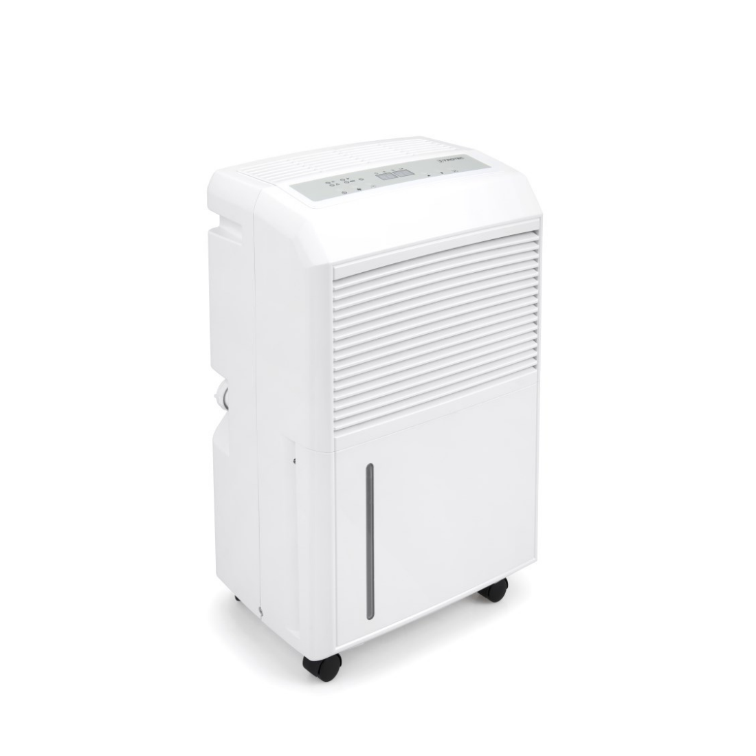 Umjesto nepovezanih stupnjeva postavljanja između minimuma i maksimuma, kod ovog odvlaživača zraka možete direktno unijeti željenu vlagu. Integrirani higrostat taj cilj potpuno automatski osigurava i regulira samostalno snagu kompresora i dvostupanjskog ventilatora.