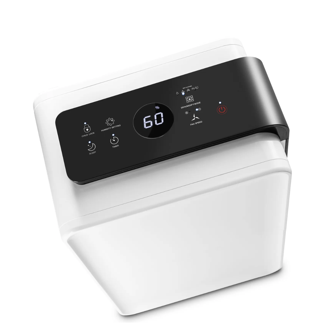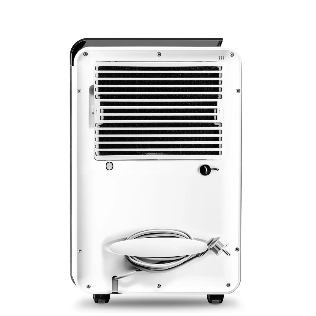 Automatsko odvlaživanje s kontroliranim higrostatom s ciljanim odabirom željene vlage (30% do 80%), digitalni senzori kvalitete zraka, četiri načina rada uključujući noćni način rada i dvostupanjski ventilator jamče pouzdano odvlaživanje i pročišćavanje zraka. Za neprekidnu uporabu bez nadzora, uređaj sa zaštitom od prelijevanja također ima priključak crijeva na stražnjoj strani, kako bi se trajno odvodio kondenzat iz zraka kroz crijevo. Prednji LED zaslon u boji, koji prikazuje status kvalitete zraka u zatvorenom u tri boje (plava, zelena, crvena). Osvijetljeni segmentni zaslon na LED zaslonu pruža precizne informacije o trenutnoj vlažnosti, unaprijed zadanoj ciljnoj vlažnosti i preostalim radnim satima kada je 24-satni mjerač vremena aktiviran za vremenski kontrolirano uključivanje i isključivanje.